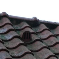 Joep schrijft: "Frank, dit huisje is totaal anders. Op het dak zitten speciale ventlatiepannen. Boven de deur ook al een ventilatievoorziening. Op de deur anti aanplakrooster. Let op de onderste dakpannen. Deze zijn helemaal dicht. Het bovenste gedeelte van de muur, net onder de dakpannen is niet zoals gewoonlijk met afgehakte stenen afgewerkt. Dit lijkt aangesmeerd te zijn met cement en toen geschilderd."